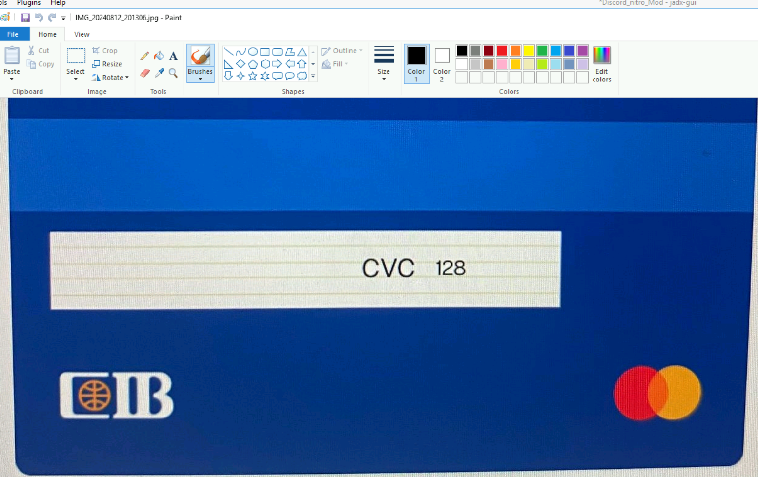 The CVC value 128 is visible in the recovered image. This demonstrates the full scope of the breach — beyond work credentials, the malware had access to personal financial information stored carelessly in the device gallery.