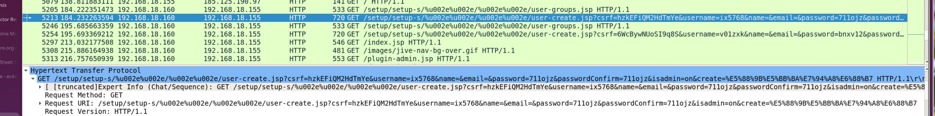 ix5768 — first account createdv01zxk — second account createdThese are visible in Wireshark as POST requests to the Openfire user management endpoint, with the usernames visible in the form data.