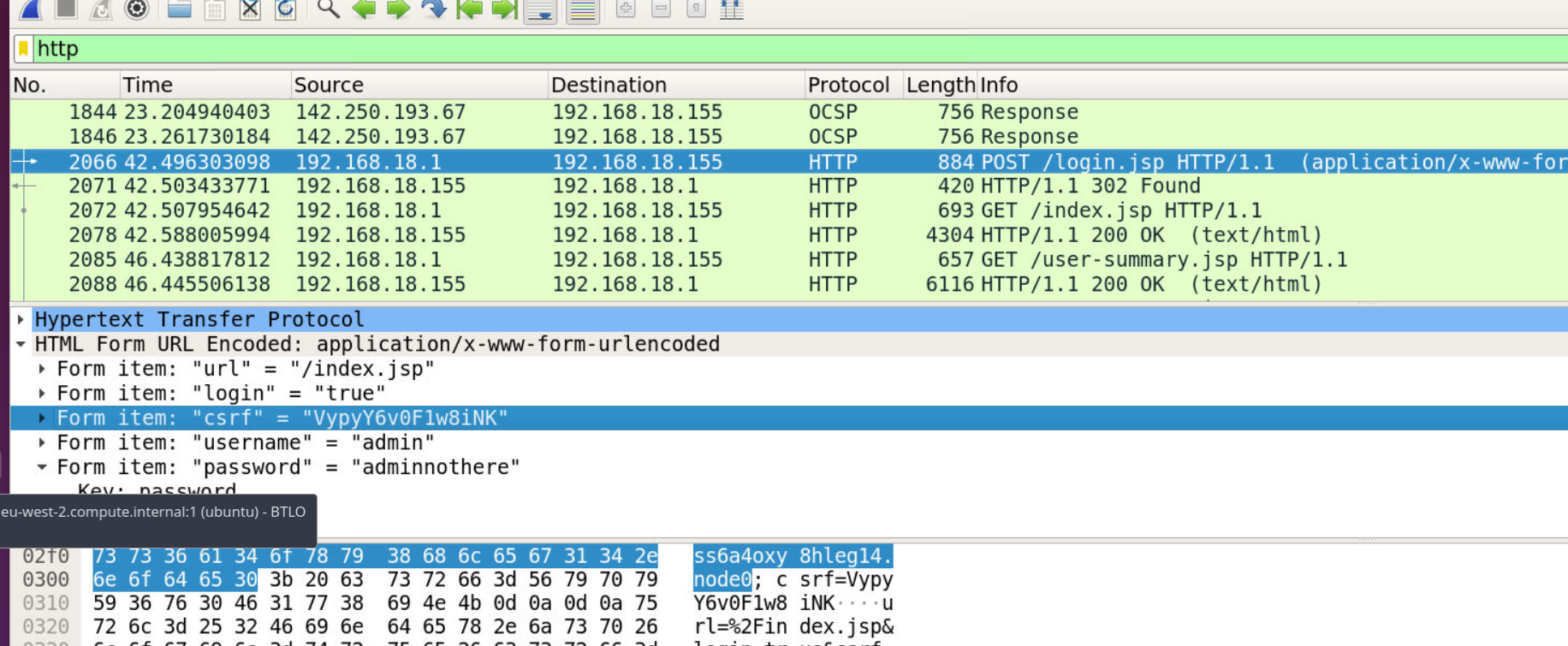 The credentials used were admin:adminnothere. The CSRF token is required by the Openfire admin panel to prevent cross-site request forgery — the attacker extracted it from the login page before submitting the form.