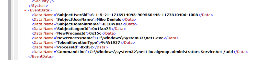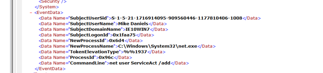 | Account Creation Command | net user ServiceAct /add |