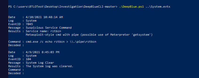 .\DeepBlue.ps1 .\System.evtx