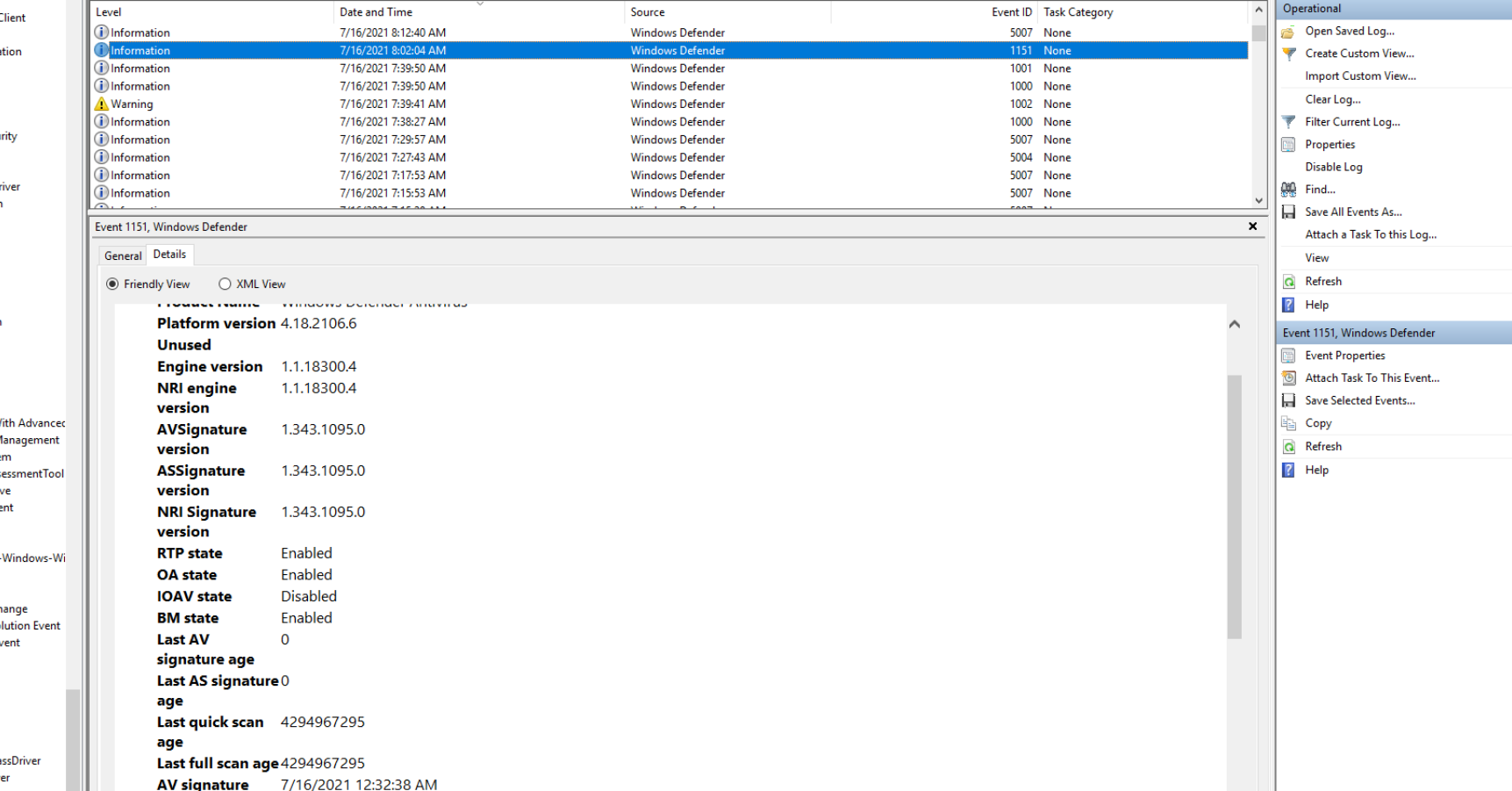 The Defender operational log lives at: