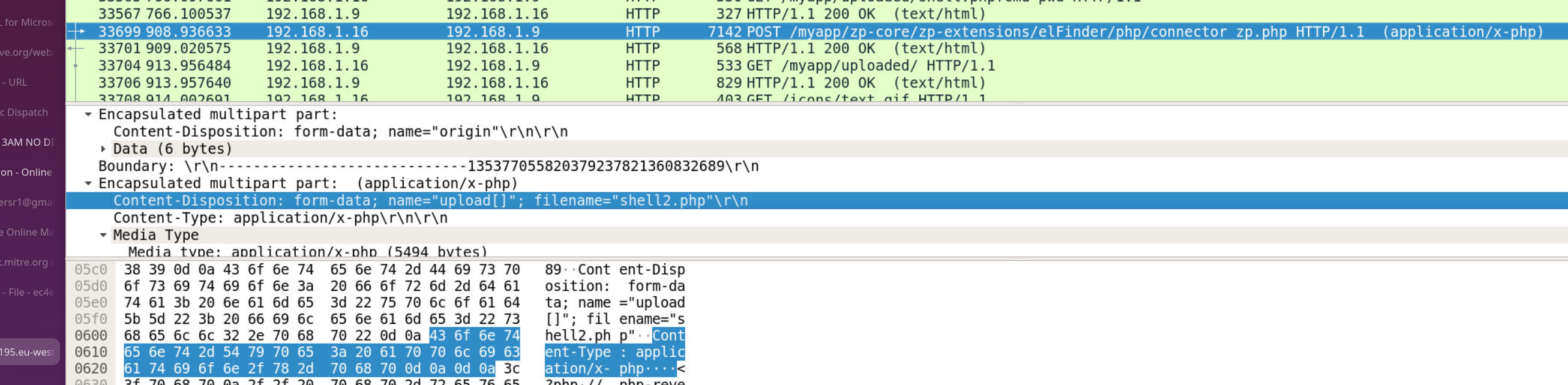 | Server Software Component: Web Shell | T1505.003 | shell.php and shell2.php deployed on web server |
