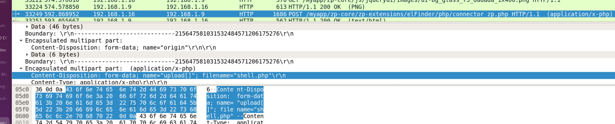 File → Export Objects → HTTP in Wireshark surfaces uploaded files. The first uploaded file is shell.php — a minimal PHP command shell: