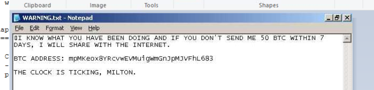 The blackmail note WARNING.txt was uploaded to: