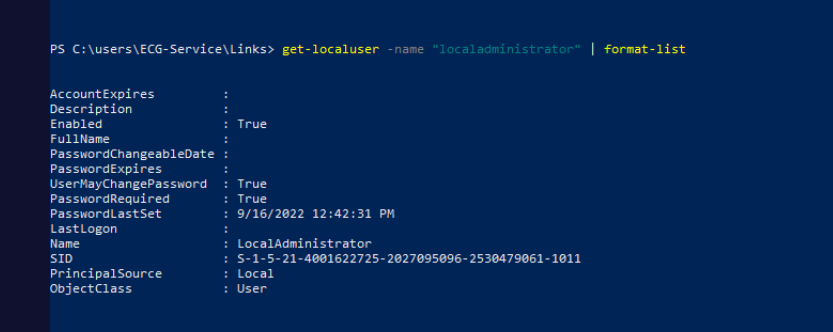 Get-LocalUser -Name "LocalAdministrator" | Format-List