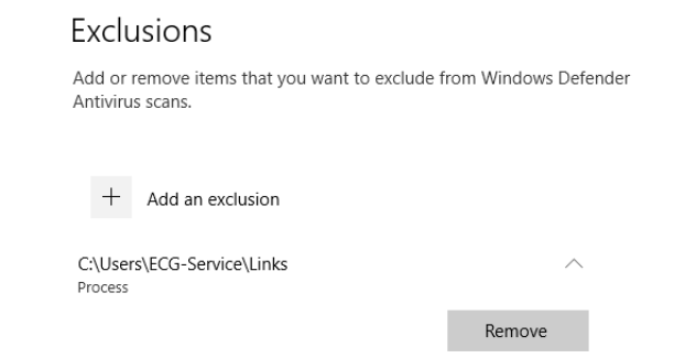 | Defender Exclusion | C:\Users\ECG-Service\Links |