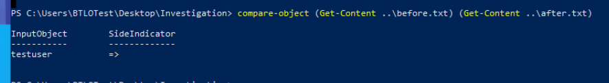 Compare-Object (Get-Content ..\before.txt) (Get-Content ..\after.txt)