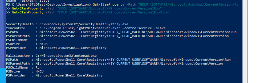 Suspicious activity has been reported on a Windows endpoint. Due to an unfortunate constraint (honey-related), the investigation must be conducted entirely through PowerShell — no GUI tools. The goal is to identify malicious programs, verify file authenticity, and uncover any persistence mechanisms installed by the attacker.