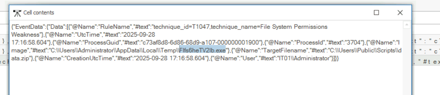 | PS1 Script | C:\Users\Public\Scripts\SGDoHBKNUpLKXCAoTHXdBGlnQJLZCGBOVGLH_20250928T061424[.]ps1 |