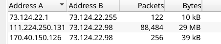 Opening the PCAP in Wireshark and checking Statistics → Conversations immediately surfaces the anomaly — a single external IP generating a disproportionate volume of TCP traffic against the web server: