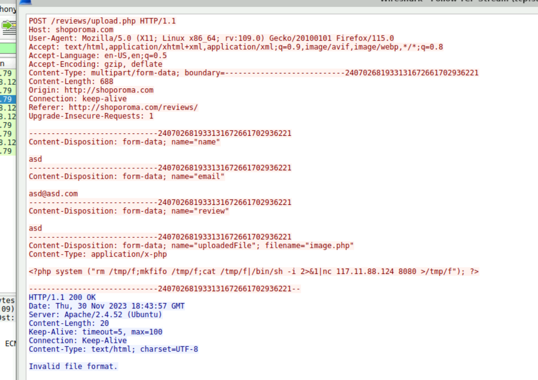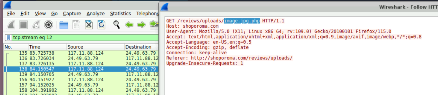 117.11.88.124 (External)24.46.63.79 (Web Server)The limited packet count (355 packets) suggested a focused intrusion rather than large-scale scanning.